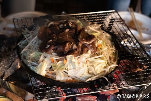 穴あきジンギスカン鍋を試す。穴なしジンギスカン鍋でガス火調理するのが正解かも。