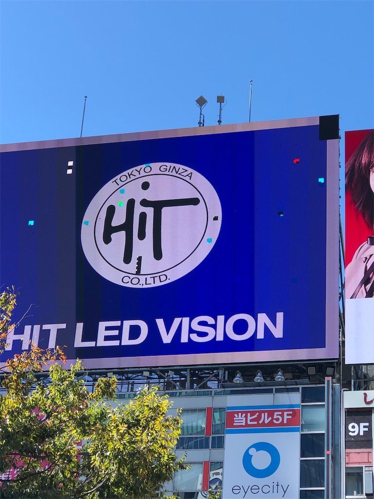 渋谷ハチ公前広場にある屋外ビジョン、シブハチヒットビジョンが台風19号の影響で損傷していてドット抜けみたいになっていた。